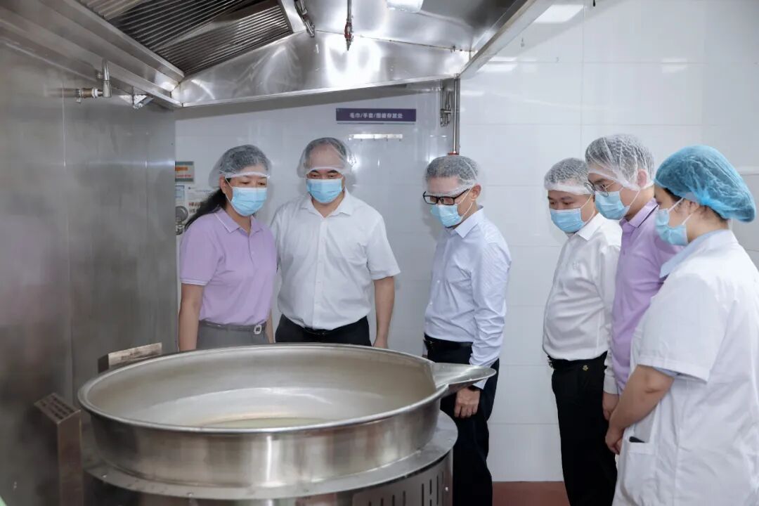 集团董事长王传启及高层领导高度重视秋季开学供餐食品安全,开餐之前,集团高层内部组织多次校园供餐会议。而开餐当天,集团品质安全中心以及高层领导到各个学校项目点巡查,并联合校、家委会跟进检查。